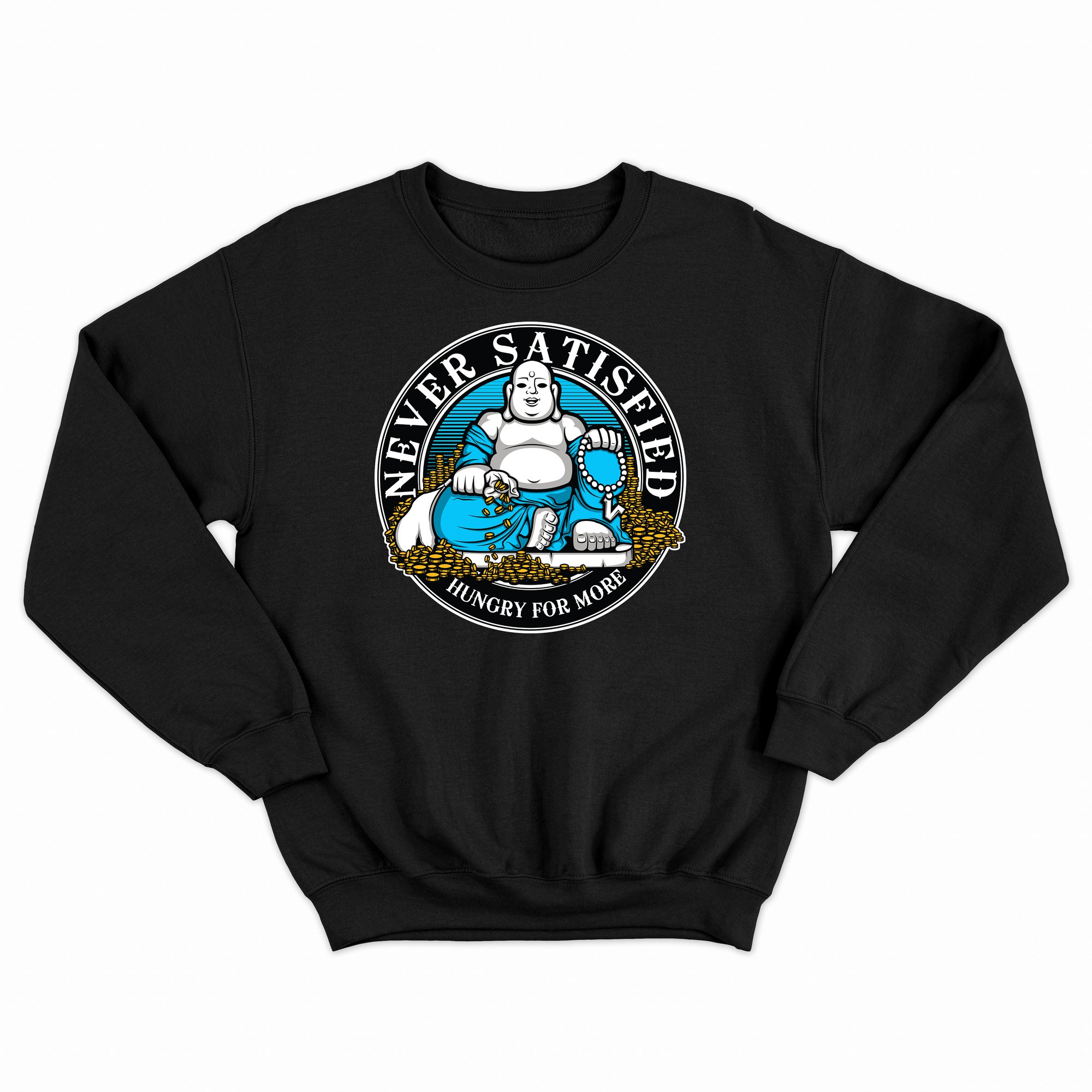 Buddah (Never Satisfied) Blue - Black Crewneck